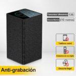 El Bloqueador de Audio tiene un tamaño compacto y un diseño que pasa inadvertido. Puede colocarse sobre una mesa de reuniones, en su salon, camuflarse en techos o en vehículos como si fuera un altavoz. De esta forma, opera sin llamar la atención mientras protege tu privacidad.