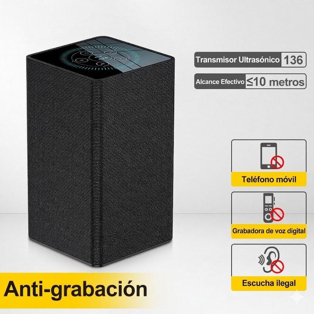 El Bloqueador de Audio protege conversaciones privadas y sensibles frente a grabaciones no autorizadas. Solo necesitas encender el dispositivo para que comience a emitir ondas ultrasónicas que enmascaran cualquier sonido. Así, resulta imposible grabar o interceptar lo que dices.