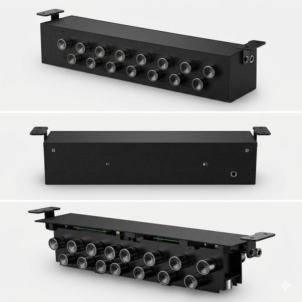 - Diseño Discreto: Se instala debajo de la mesa para una protección invisible o encima de la mesa disimulando ser un altavoz comunicador actual, comun y corriente