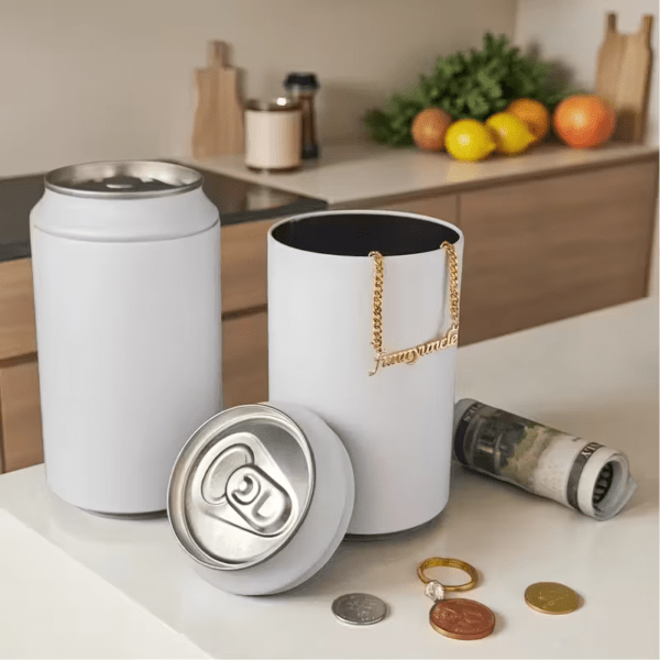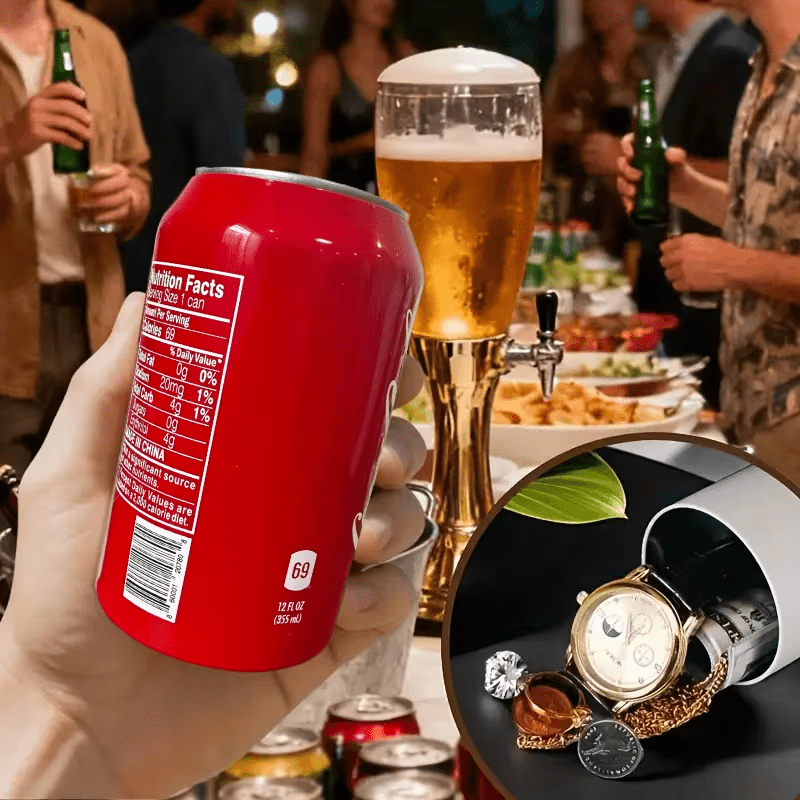 ¡Oculta tus pertenencias más valiosas a plena vista con esta ingeniosa lata de refresco falsa! Este compartimento secreto es perfecto para guardar dinero, joyas y otros objetos de valor en casa o mientras viajas. ¡Nadie sospechará que tu bebida refrescante esconde tus tesoros!»