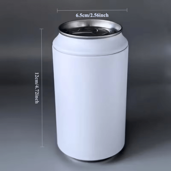 es una lata de color blanco con una funda plastica de goma flexible que la hace una lata de refresco comun y corriente