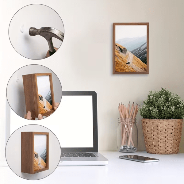 Diseño Elegante y Duradero: Fabricado con un acabado de madera texturizada de alta calidad, este marco se integra sin esfuerzo en cualquier decoración. Es tanto una pieza de declaración estética como una herramienta de seguridad funcional.