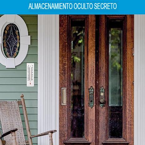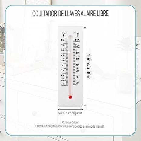 - Fácil de instalar: se instala fácilmente al aire libre con cualquier tornillo estándar (no incluido).Ya sea en el porche, el patio o el jardín, esta llave del termómetro es una forma ideal de almacenar discretamente llaves de repuesto y otros artículos pequeños.Material y Montaje: Está construido en resina o plástico resistente y está diseñado para montarse fácilmente en paredes exteriores.